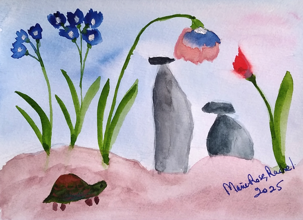 Cette carte est inspirée par des œuvres de pierres de Roger Nadeau.Elles se trouvent dans le Sentier de poésie à Saint-Venant-de Paquette.